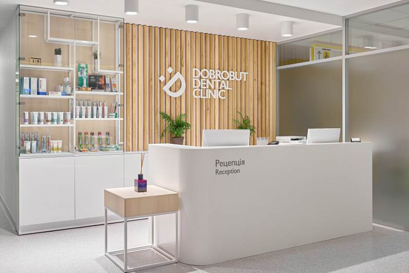 The Dobrobut Dental Clinic is located on the first floor of the Dobrobut Medical Center in Obolon. The Center works seven days a week. Appointments for consultation and treatment are scheduled through the contact center 24/7.