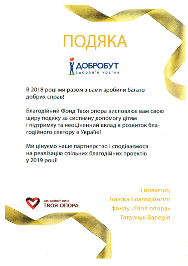 2016 – “Dobrobut” Medical Center. Pediatrics of Special Development (the center's specialists see patients at the the center's specialists see patients at the “Dobrobut” Medical Center at 2-E Tatarska Street)