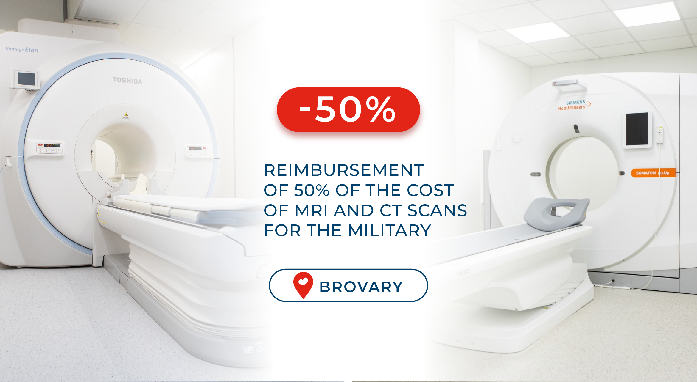 Starting from January 16 and until the end of 2024, the Brovary City Council will compensate 50% of the cost of MRI and CT scans for defenders who are registered on the territory of the Brovary City Territorial Community of the Kyiv Region, who will be examinated at the Dobrobut Medical Center in Brovary.