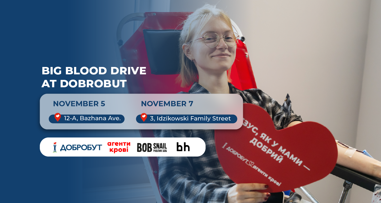 The campaign is organized by the “Dobrobut” medical network together with “Blood Agents,” the Kyiv Regional Blood Center, the Armed Forces Blood Center, and with the support of the healthy sweets brand “Ravlyk Bob” and the craft bakery Bakehouse.