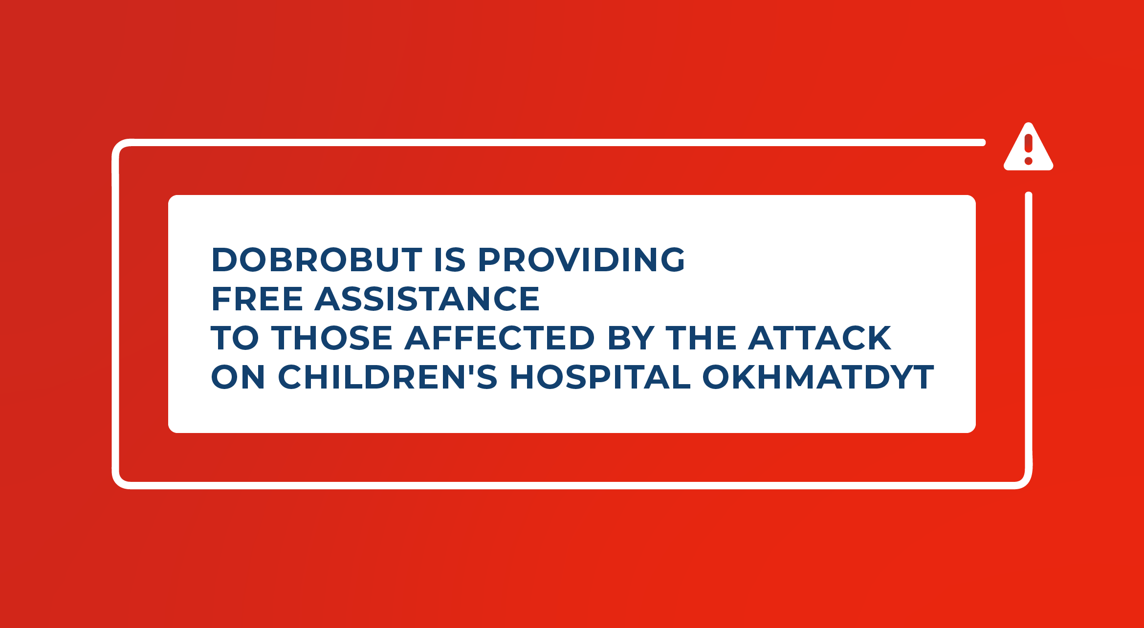 All Dobrobut ambulance crews are currently working at the scene. Our hospitals on the right and left bank of Kyiv are ready to take in and provide all the necessary help to children who suffered from the shelling of Okhmatdyt, as well as to adults and staff of the children's hospital, free of charge.