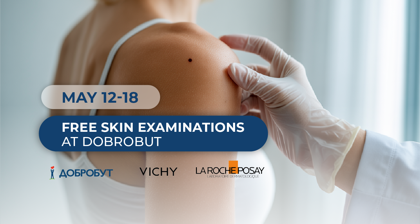 From May 12 to 18, everyone will be able to undergo a free mole examination at one of the Dobrobut medical centers, except for the multidisciplinary hospitals at 3 Simi Idzykovskoho Street and 12A Mykola Bazhan Avenue and the Center for Cosmetology and Dermatology at 71G Yulia Zdanovska Street.