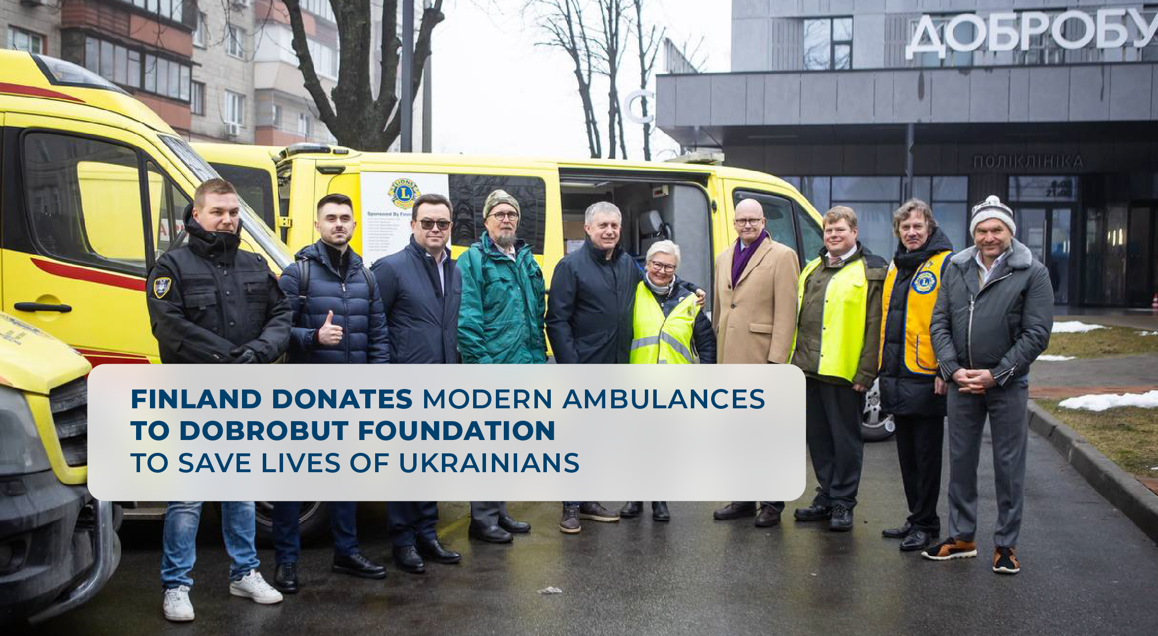 The Finnish charity organization Pro patria Suomi-Ukraina Ry, with the support of the Lions Club, as well as the Association of Ukrainians in Finland and the Association of Ukrainians in Tampere, in cooperation with the Dobrobut Foundation, donated 6 modern ambulances with all the necessary equipment to Ukraine.