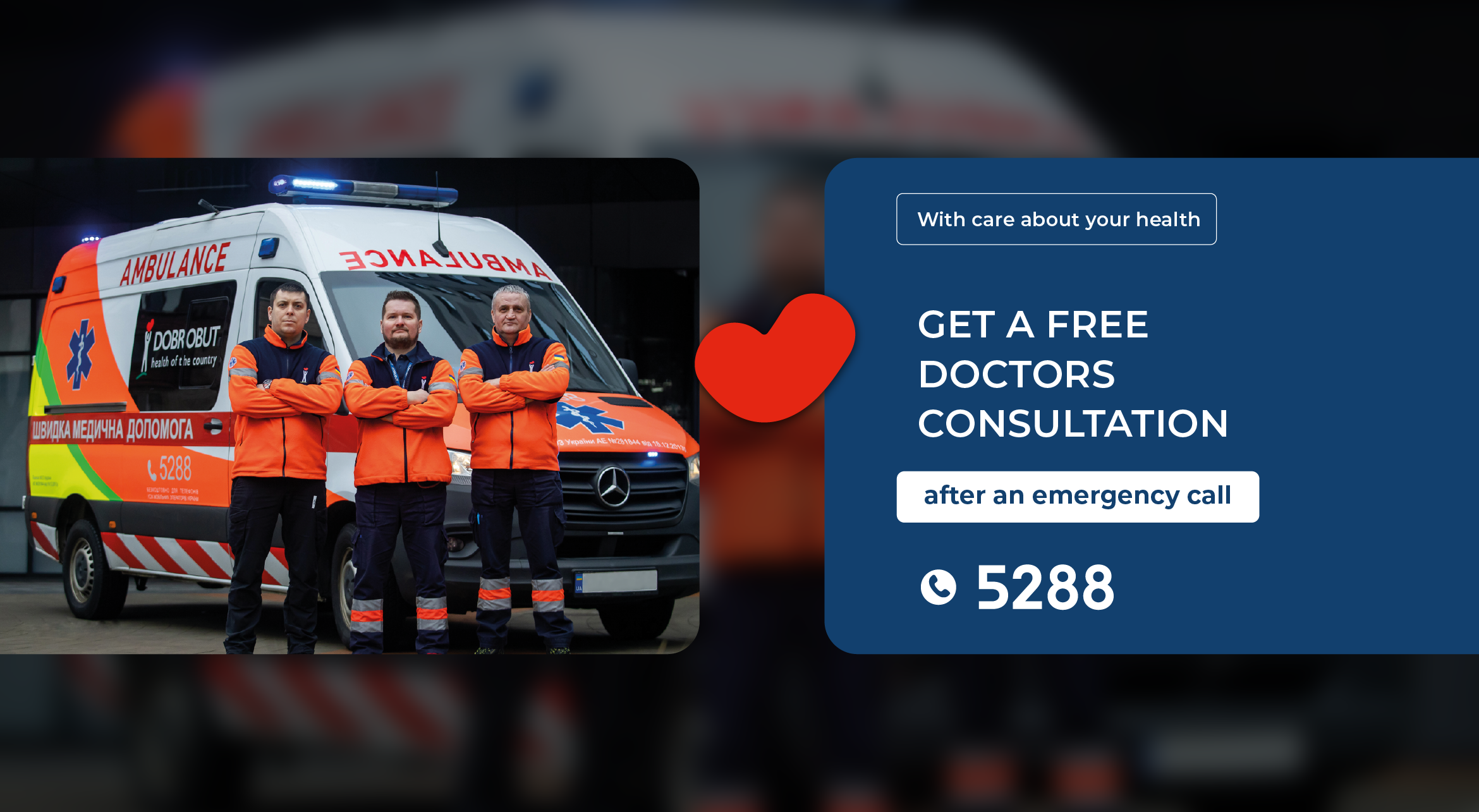 After calling an ambulance in the Dobrobut medical network, you will receive a free medical consultation for an adult or a child if the consultation is recommended by emergency doctors.