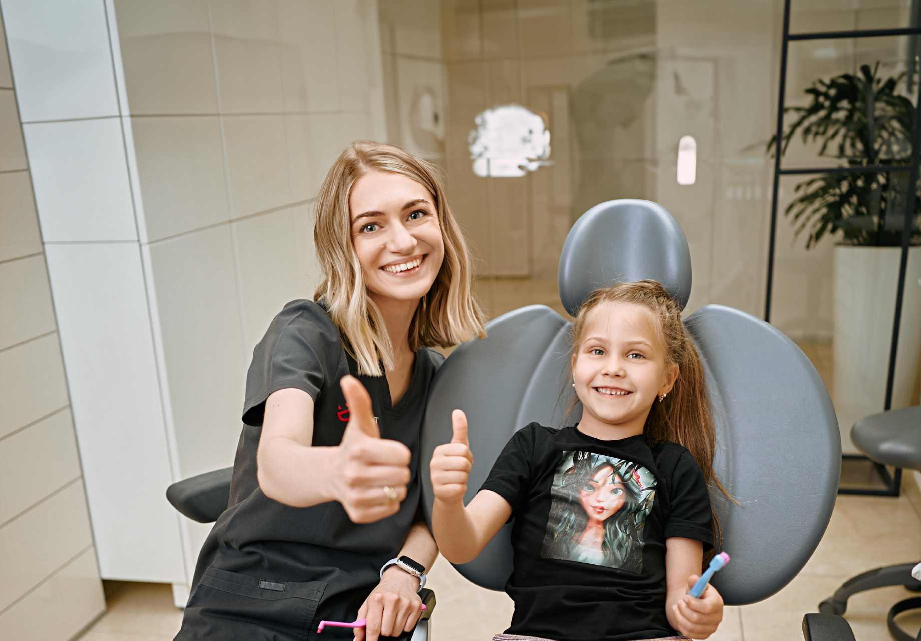 The philosophy of caring for small patients at Dobrobut Dental Clinic is a special approach that includes mandatory psychological adaptation for the child, consultations playfully, favorite toys and cartoons, as well as treatment in medication sleep without pain and fear.