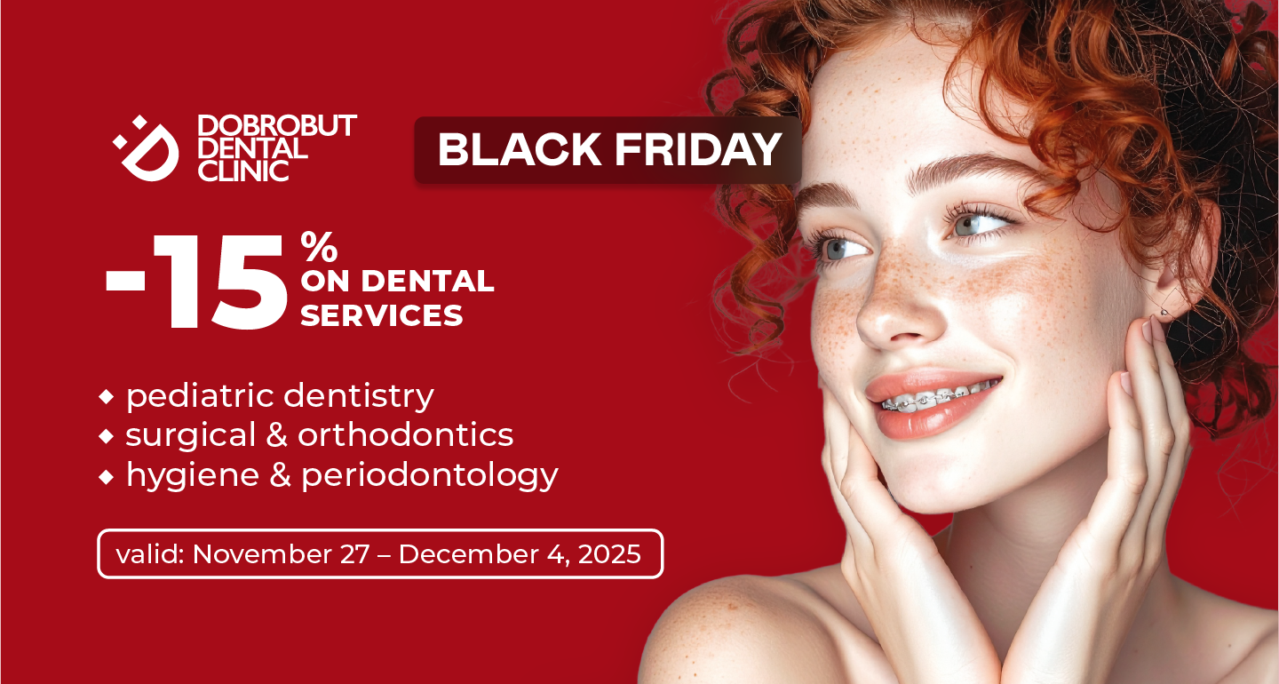 From November 27 to December 4, 2025, the Dobrobut dental clinics in Kyiv offer a unique opportunity to care for your oral health and the beauty of your smile with a special –15% discount on selected dental services: