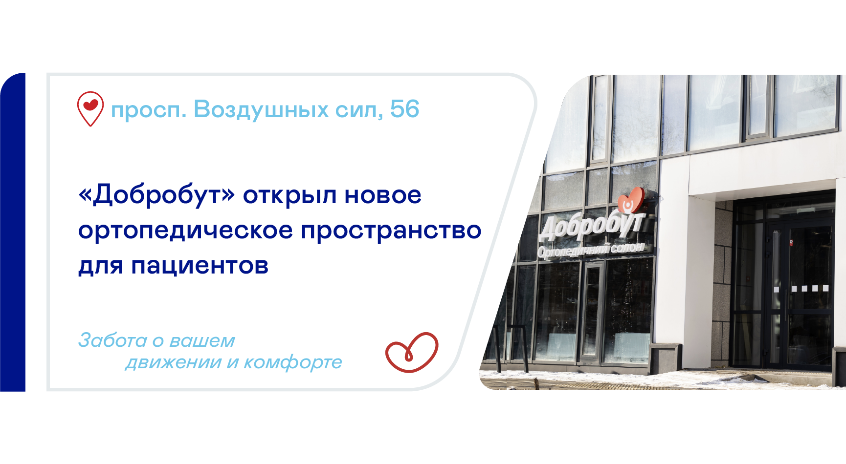 Медицинская сеть «Добробут» открыла ортопедический салон на проспекте Воздушных Сил, 54. Новое пространство специализируется на подборе ортопедических и медицинских изделий для лечения, реабилитации и профилактики заболеваний опорно-двигательного аппарата.