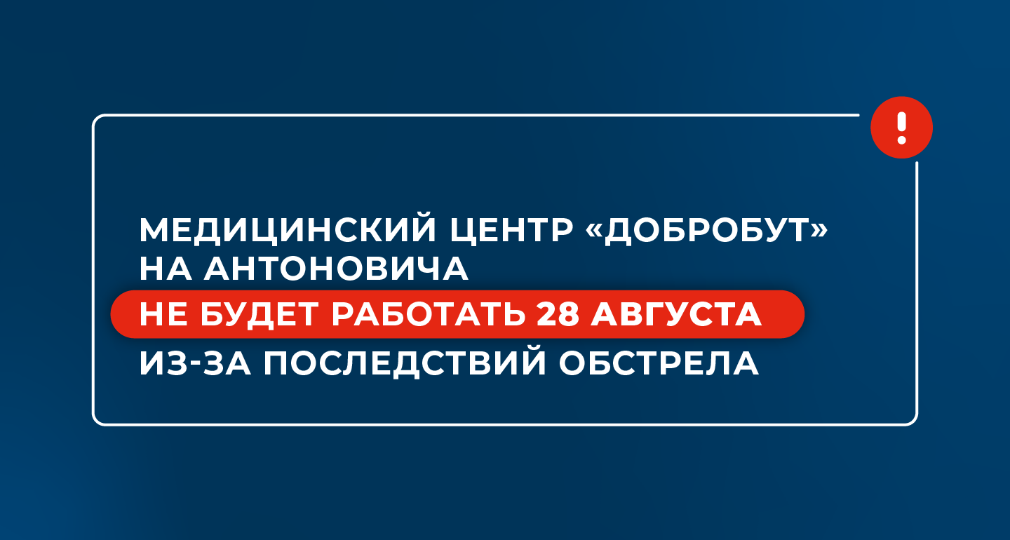 В связи с этим 28 августа центр не сможет принимать пациентов. Сейчас мы оцениваем масштабы разрушений и делаем всё возможное, чтобы возобновить прием как можно быстрее. О возобновлении работы сообщим в ближайшее время.