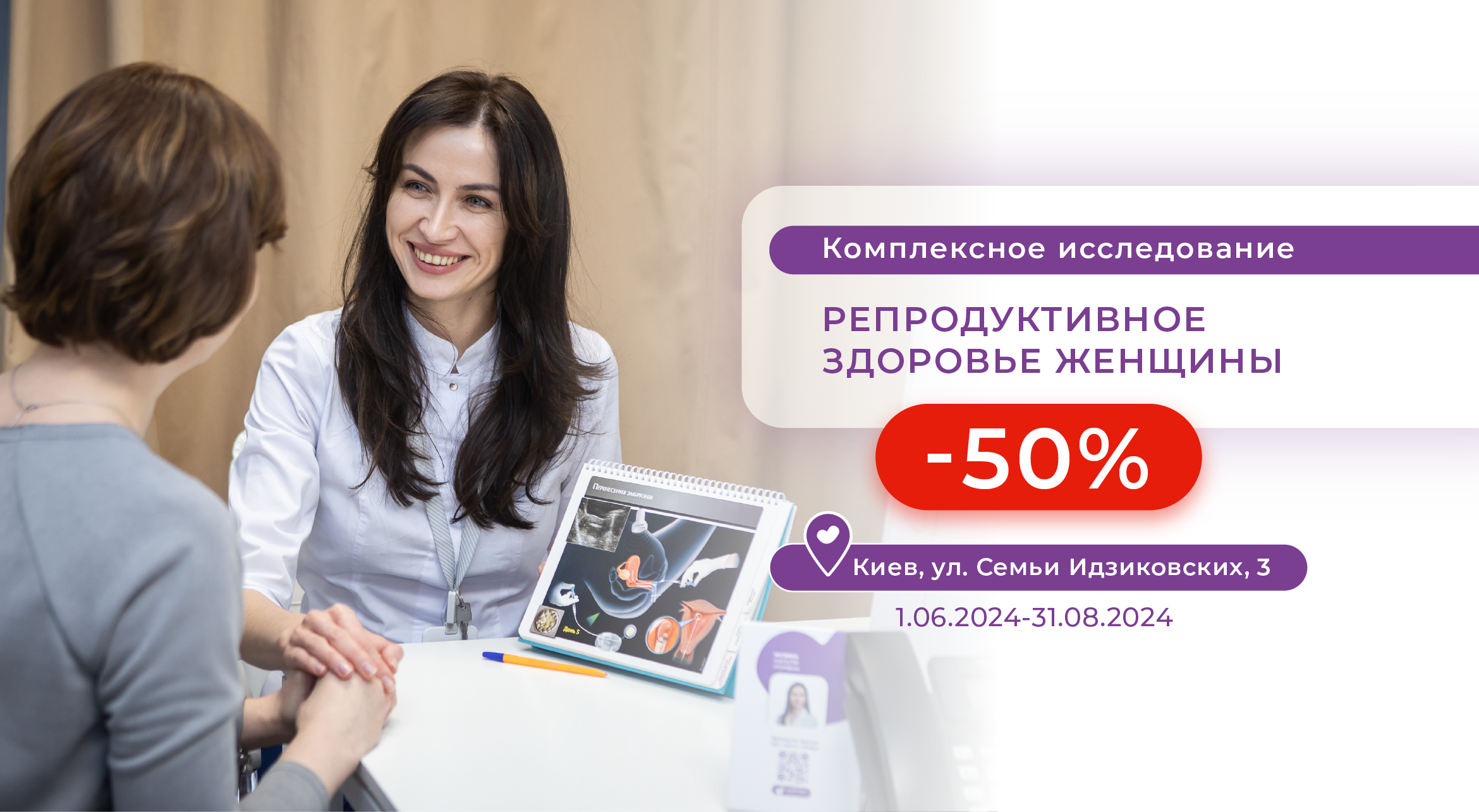 Важно заботиться о себе и знать состояние вашего репродуктивного здоровья. Поэтому мы подготовили нечто особенное! Возможность проверить ваши шансы на успешную беременность - чекап репродуктивного здоровья женщин со скидкой 50%.