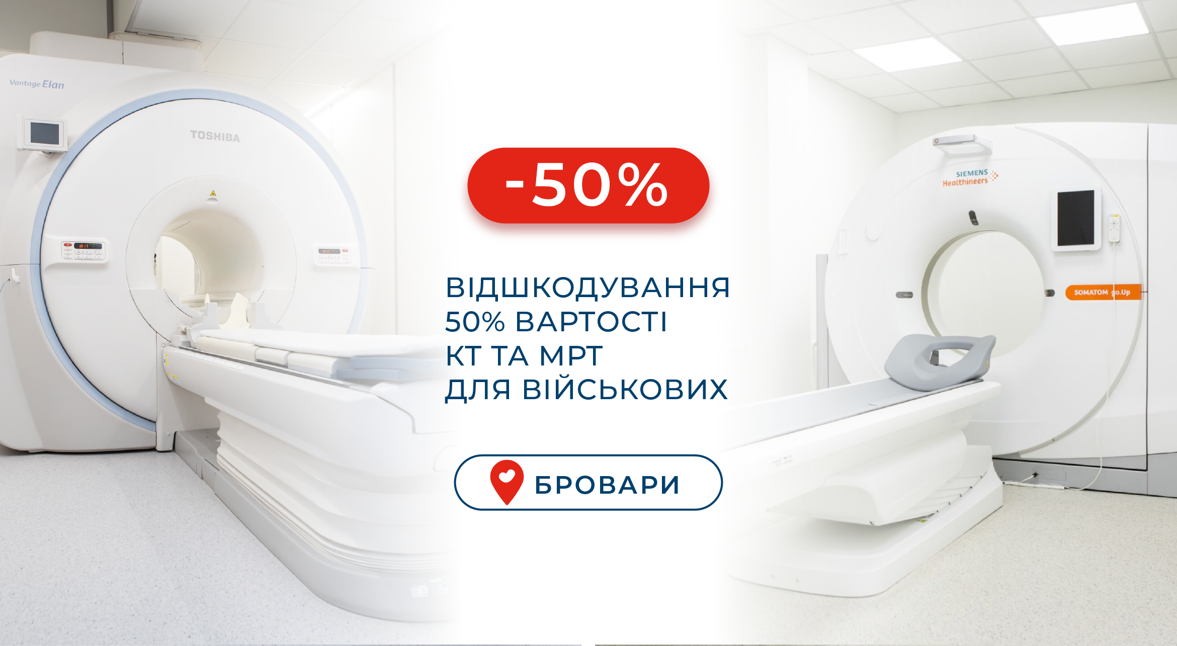 Починаючи з 16 січня та до кінця 2024 року Броварська міська рада компенсуватиме 50% від вартості послуг МРТ та КТ для захисників та захисниць, які зареєстровані на території Броварської міської територіальної громади Київської області, що пройдуть обстеження в медичному центрі Добробут в Броварах.
