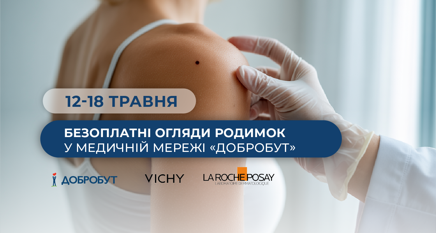 Від 12 до 18 травня всі охочі зможуть пройти безоплатний огляд родимок в одному з медичних центрів «Добробут», крім багатопрофільних лікарень на вулиці Сім’ї Ідзиковських, 3 і проспекті Миколи Бажана, 12А та центру косметології та дерматології на вулиці Юлії Здановської, 71Г.