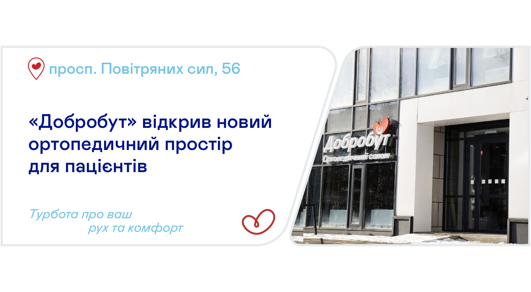 Медична мережа «Добробут» відкрила ортопедичний салон на проспекті Повітряних Сил, 54. Новий простір спеціалізується на підборі ортопедичних та медичних виробів для лікування, реабілітації та профілактики захворювань опорно-рухового апарату.