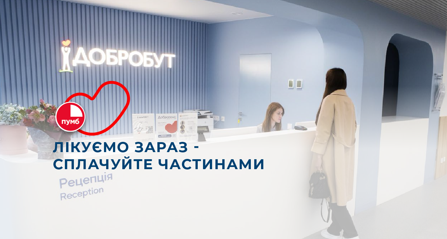 Отримайте кваліфіковану медичну допомогу у Добробуті, та сплачуйте зручно, без відсотків та переплат — частинами від ПУМБ.