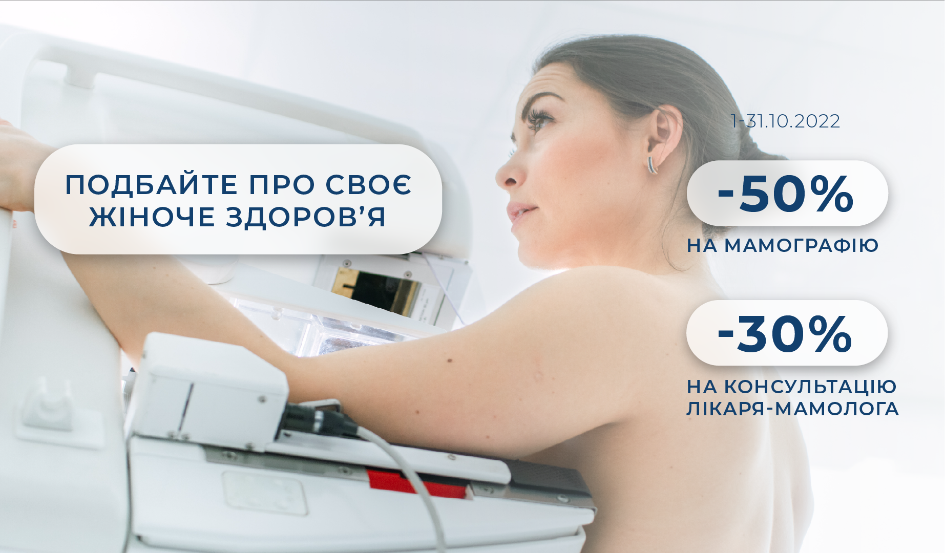 Скористайтеся акційною пропозицією та пройдіть на мамографічне дослідження й консультацію у мамолога.
