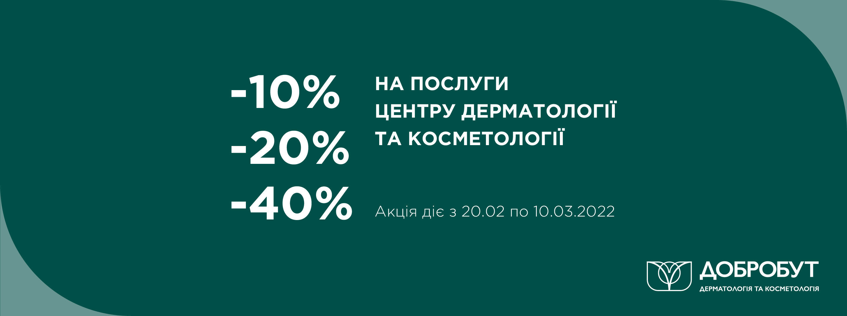 Акція для усіх клієнтів Добробут - знижки -10% -20% -40% на такі послуги Центру Дерматології та косметології: