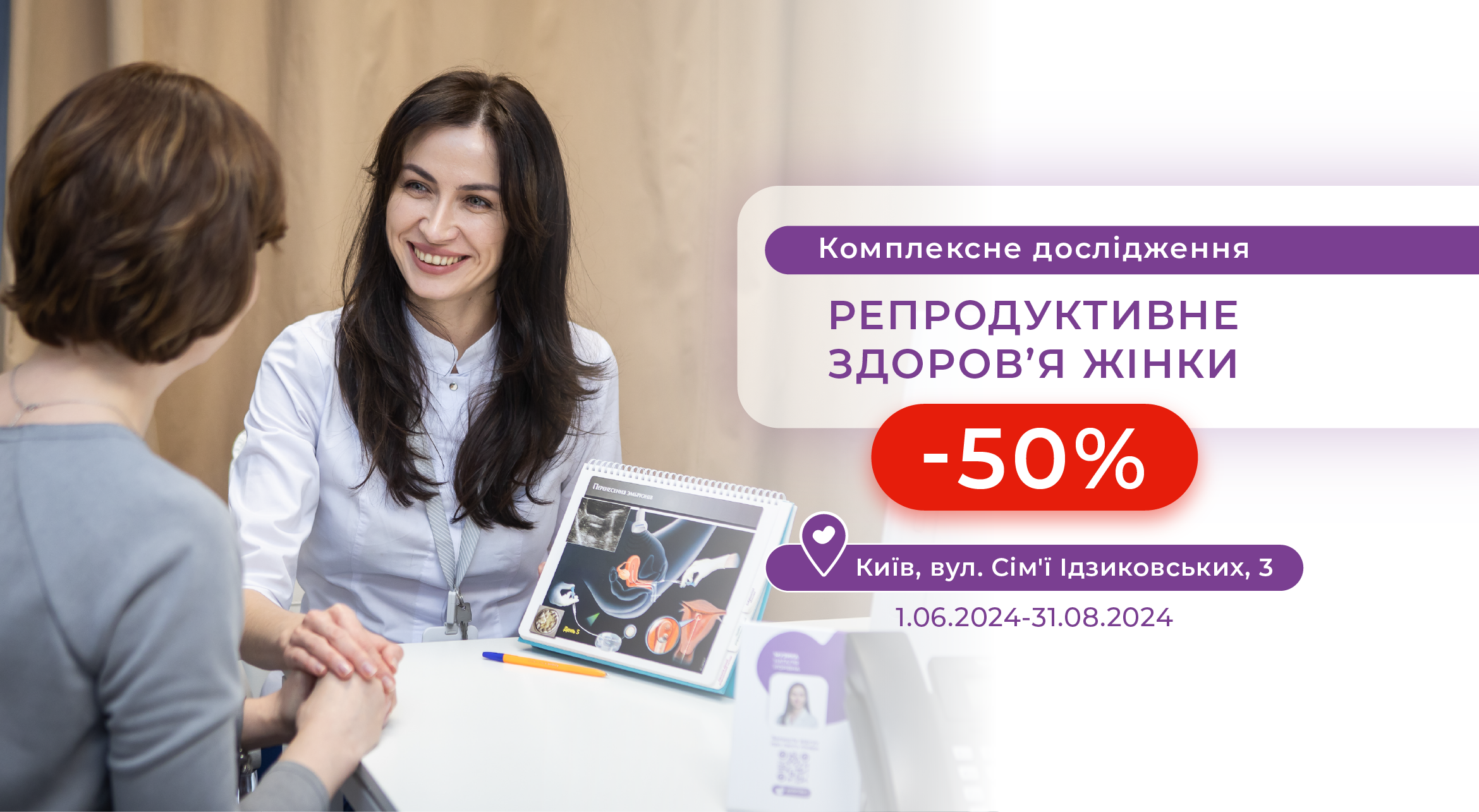 Важливо піклуватися про себе та знати стан вашого репродуктивного здоров’я. Тож ми підготували дещо особливе! Можливість перевірити ваші шанси на успішну вагітність – чекап репродуктивного здоров'я жінок зі знижкою 50%.
