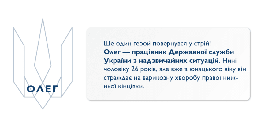 Варикозна хвороба вражає чоловіків також. А у випадку Олега ще й заважає виконувати надважливі службові обов’язки, адже обмежує свободу руху, завдає біль та без лікування спричиняє розвиток життєво небезпечних ускладнень.