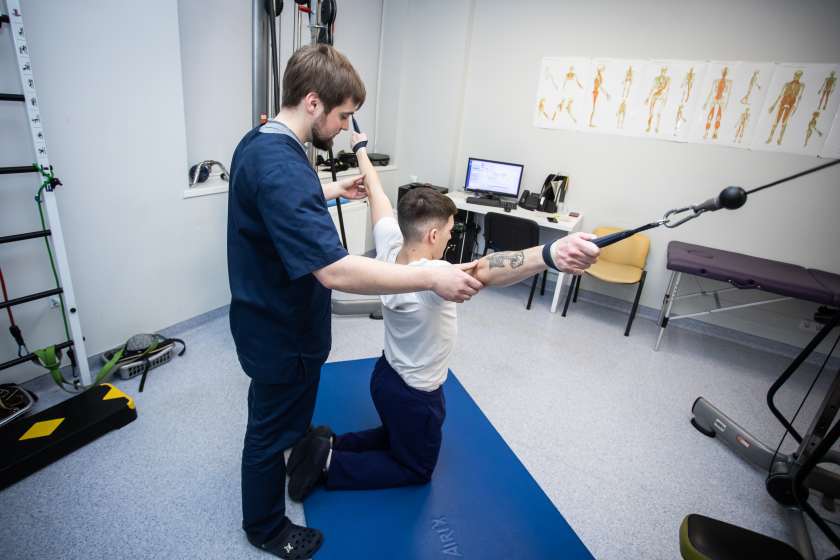 ЛФК, яка є обов'язковою та невід'ємною частиною реабілітації пацієнтів для відновлення працездатності та тонусу м'язів, що втратили свою силу, рухливості суглобів, відновлення нормальних патернів руху.