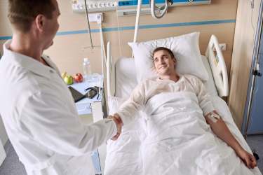 Лікар радісно посміхається у відповідь. Лікар щасливий, бо операція пройшла успішно. Він нахвалює бійцівський характер. Не свій. Пацієнта.