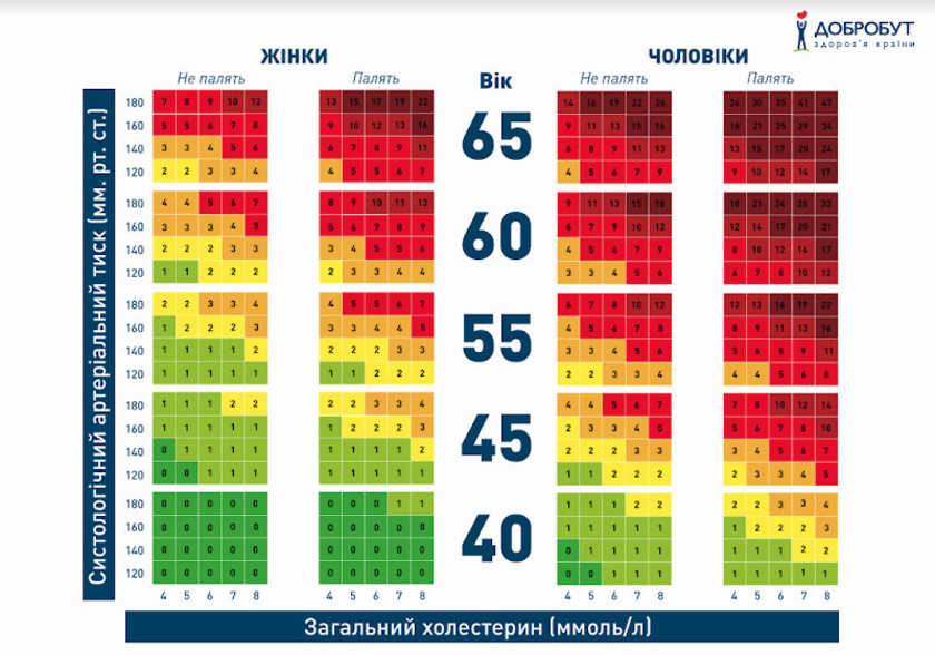 По мере повышения АД увеличивается риск сердечно-сосудистых заболеваний и смертности. Исследования показали, что вероятность осложнений увеличивается даже при повышении АД в пределах нормы, а большинство осложнений наблюдается у пациентов с незначительным подъемом АД. Медики пришли к выводу, что прогноз зависит от уровня АД, от уровня холестерина и сопутствующей патологии. Так например наличие почечной недостаточности или сахарного диабета увеличивает риски в 3-5 раз. Разделение больных по степени риска сердечно-сосудистых катастроф позволяет точнее оценить индивидуальный прогноз и выбрать оптимальную схему лечения. Согласно международной таблице SCORE можно рассчитать риски в зависимости от артериального давления и уровня общего холестерина.